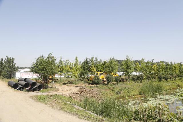 5月19日,在省道270戴圩段西側的施工現(xiàn)場,施工人員正在進行管道鋪設。在這段長達6公里的施工面上,種植著3排紅楓樹,每排大約有1200多棵。如果按照原有規(guī)定施工,三排樹苗均要進行移出。為了減少對綠植的破壞,施工方將20米的作業(yè)面縮減至9到10米,這樣只需移出一排樹苗即可。